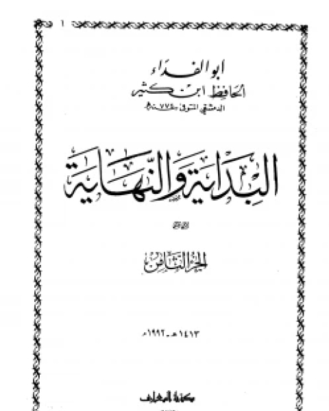 1992م - 1443هـ البِدَايَةُ وَالنِهَايَة هو عمل موسوعيّ تاريخي ضخم، ألّفه الحافظ ابن كثير إسماعيل بن عمر الدمشقي المتوفى سنة 774هـ. وهو عرض للتاريخ من بدء الخلق إلى نهايته يبدأ ببداية خلق السماوات والأرض، والملائكة إلى خلق آدم، ثم يتطرق إلى قصص الأنبياء مختصرًا ثم التفصيل في الأحداث التاريخيّة منذ مبعث النبي محمد حتى سنة 768 هـ بطريقة التبويب على السنوات. وتبدأ السنة بقوله "ثم دخلت سنة.." ثم يسرد الأحداث التاريخيّة فيها ثم يذكر أبرز من توفوا في هذه السنة. أما جزء النهاية ففيه علامات الساعة لغاية يوم الحساب بالتفصيل. قال ابن كثير عن كتابه: " فهذا الكتاب أذكر فيه بعون الله وحسن توفيقه ما يسره الله تعالى بحوله وقوته من ذكر مبدأ المخلوقات: من خلق العرش والكرسي والسماوات، والأرضين ...، وقصص النبيين ... ، حتى تنتهي النبوة إلى أيام نبينا محمد صلوات الله وسلامه عليه ...... ثم نذكر ما بعد ذلك إلى زماننا، ونذكر الفتن والملاحم وأشراط الساعة. ثم البعث والنشور وأهوال القيامة.... وما ورد في ذلك من الكتاب والسنة والآثار والأخبار المنقولة المعقولة عند العلماء وورثة الأنبياء..."» فكان الكتاب بحق المرآة الصادقة، والمرجع الأصيل لأهل هذا الفن. جاء في مقدمة الكتاب: الحمد لله الأول والآخر، الباطن الظاهر، الذي هو بكل شئ عليم، الأول فليس قبله شئ، الآخر فليس بعده شئ، الظاهر فليس فوقه شئ الباطن، فليس دونه شئ، الازلي القديم الذي لم يزل موجودا بصفات الكمال، ولا يزال دائما مستمرا باقيا سرمديا بلا انقضاء ولا انفصال ولا زوال. يعلم دبيب النملة السوداء، على الصخرة الصماء، في الليلة الظلماء، وعدد الرمال. وهو العلي الكبير المتعال، العلي العظيم الذي خلق كل شئ فقدره تقديرا. ورفع السموات بغير عمد، وزينها بالكواكب الزاهرات، وجعل فيها سراجا وقمرا منيرا وسوى فوقهن سريرا، شرجعا عاليا منيفا متسعا مقبيا مستديرا. وهو العرش العظيم - له قوائم عظام، تحمله الملائكة الكرام، وتحفه الكروبيون عليهم الصلاة والسلام، ولهم زجل بالتقديس والتعظيم. وكذا أرجاء السموات مشحونة بالملائكة، ويفد منهم في كل يوم سبعون ألفا إلى البيت المعمور بالسماء الرابعة لا يعودون إليه، آخر ما عليهم في تهليل وتحميد وتكبير وصلاة وتسليم. ووضع الارض للانام على تيار الماء. وجعل فيها رواسي من فوقها وبارك فيها وقدر فيها أقواتها في أربعة أيام قبل خلق السماء، وأنبت فيها من كل زوجين اثنين، دلالة للالباء من جميع ما يحتاج العباد إليه في شتائهم وصيفهم، ولكل ما يحتاجون إليه ويملكونه من حيوان بهيم. وبدأ خلق الانسان من طين، وجعل نسله من سلالة من ماء مهين، في قرار مكين. فجعله سميعا بصيرا، بعد ان لم يكن شيئا مذكورا. وشرفه بالعلم والتعليم. خلق بيده الكريمة آدم أبا البشر، وصور جثته ونفخ فيه من روحه وأسجد له ملائكته، وخلق منه زوجه حواء أم البشر فآنس بها وحدته، وأسكنهما جنته، واسبغ عليهما نعمته. ثم أهبطهما إلى الارض لما سبق في ذلك من حكمة الحكيم. وبث منهما رجالا كثيرا ونساء، وقسمهم بقدرة العظيم ملوكا ورعاة، وفقراء وأغنياء، وأحرارا وعبيدا، وحرائر وإماء. وأسكنهم أرجاء الارض، طولها والعرض، وجعلهم خلائف فيها يخلف البعض منهم البعض، إلى يوم الحساب والعرض على العليم الحكيم. وسخر لهم الانهار من سائر الاقطار، تشق الاقاليم إلى الامصار، ما بين صغار وكبار، على مقدار الحاجات والاوطار، وأنبع لهم العيون والآبار. وأرسل عليهم السحائب بالامطار، فأنبت لهم سائر صنوف الزرع والثمار. وآتاهم من كل ما سألوه بلسان حالهم وقالهم: (وإن تعدوا نعمة الله لا تحصوها إن الانسان لظلوم كفار): فسبحان الكريم العظيم الحليم * وكان من أعظم نعمه عليهم. وإحسانه إليهم، بعد أن خلقهم ورزقهم ويسر لهم السبيل وأنطقهم، أن أرسل رسله إليهم، وأنزل كتبه عليهم: مبينة حلاله وحرامه، وأخباره وأحكامه، وتفصيل كل شئ في المبدإ والمعاد إلى يوم القيامة. فالسعيد من قابل الاخبار بالتصديق والتسليم، والاوامر بالانقياد والنواهي بالتعظ