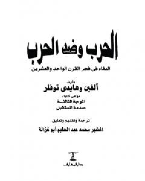 الحرب وضد الحرب يعني الكثير ، فهو يرى أن ثروة التكنولوجيات التى نعيشها ولا زالت تتطور تحاول جادة أن تستبدل حرب القتل التى سادت هذا القرن ليحل محلها ما أسماه الحرب غير القاتلة ويعنى بها حرباً يراعى فيها تقليل معدلات القتل إلى أقل حد فيتحدث باستفاضة عن الانسان الالى والذى نعرفه ‘بالروبوت’ وكيف سيسود كثيراً من المجالات لدرجة أنه جاء بتعبير جديد علينا ولكنه دقيق في معناه ألا وهو ‘المقاتلون الروبوت’ فهو يرى أن الانسان الآلى سيقتحم مجال القتال فيقوم على سبيل المثال برص الألغام وتأمين الألغام ، وسيقوم بحراسة الحدود وأعمال عسكرية اخرى كثيرة كانت وقفاً على المقاتل الانسان.